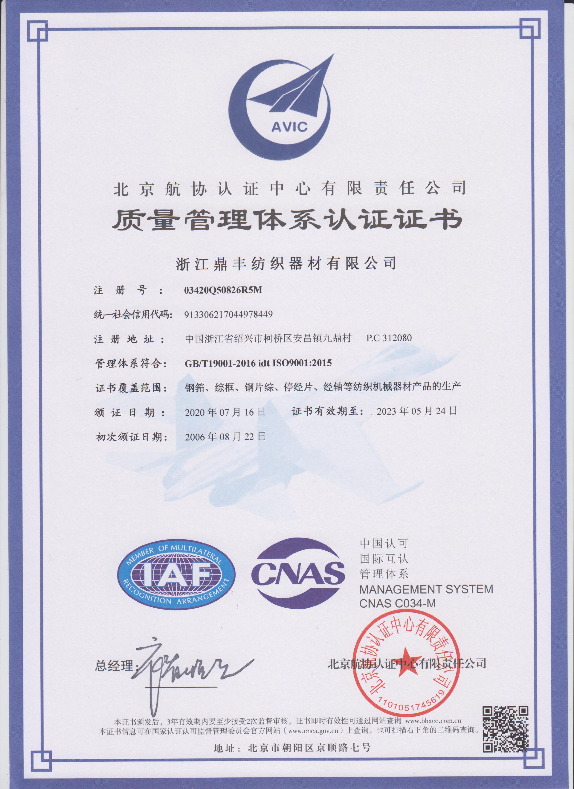 公司現(xiàn)有固定資產(chǎn)6000余萬(wàn)元,員工300余人,現(xiàn)具有年產(chǎn)噴氣異型筘12萬(wàn)米,劍桿筘32萬(wàn)米,噴水筘5萬(wàn)米,綜框20萬(wàn)片,鋼片綜2億片,停經(jīng)片1.5億片, 織軸1.2萬(wàn)套的生產(chǎn)能力。公司“越泉”商標(biāo)被評(píng)為“中國(guó)馳名商標(biāo)”。公司通過(guò)ISO9001 :2015國(guó)際質(zhì)量體系認(rèn)證,ISO14001:2015國(guó)際環(huán)境管理體系認(rèn)證,ISO45001:2018國(guó)際職業(yè)健康安全管理體系認(rèn)證,噴氣織機(jī)用鋼筘和織機(jī)用鋁合金綜框獲得“浙江制造”品牌認(rèn)證,公司擁有自營(yíng)進(jìn)出口權(quán),產(chǎn)品暢銷(xiāo)全國(guó)并遠(yuǎn)銷(xiāo)印度、巴基斯坦、土耳其、埃及、哥倫比亞、意大利等國(guó)家和地區(qū)。